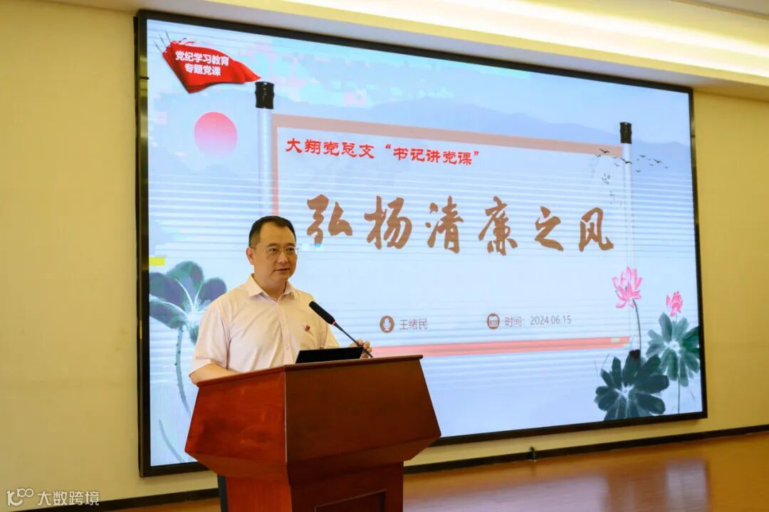 随后,大翔医药集团党总支部书记王绪民同志领学了专题党课《弘扬清廉之风》。王绪民书记抛出关于廉洁自律的重要性,强调了廉洁自律是党员干部的立身之本、处世之道和为政之要。并强化党的二十大报告关于“加强新时代廉洁文化建设,教育引导广大党员、干部增强不想腐的自觉”。