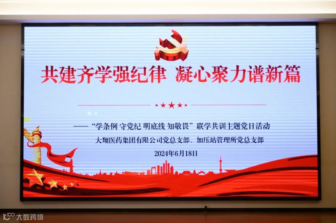夏日炎炎,绿意盎然。6月18日,为加强两支部之间的沟通交流,深化合作共建,共同推动党建工作创新发展,大翔医药集团有限公司总支部委员会携手加压站管理所党总支部,以共同追求、携手前行的精神,隆重举行了“建齐学强纪律 凝心聚力谱新篇”为主题的红联共建党日活动。
