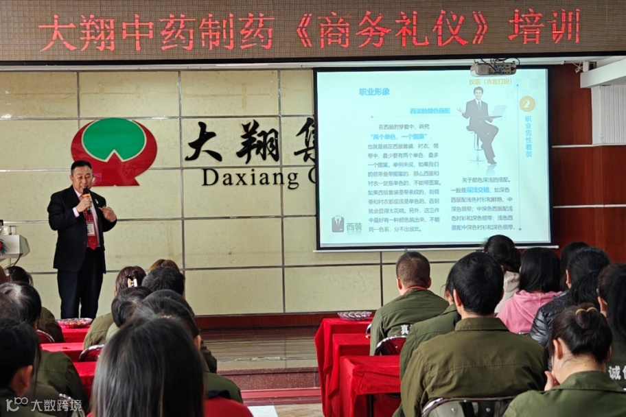 2月24日下午,大翔中药制药人力资源部举办了一场备受瞩目的活动,邀请了大翔中药制药常务副总经理姜海波先生为公司全体员工授课。“商务礼仪”培训旨在提高员工的综合素质、培养良好的职业形象和良好的职业道德素养。