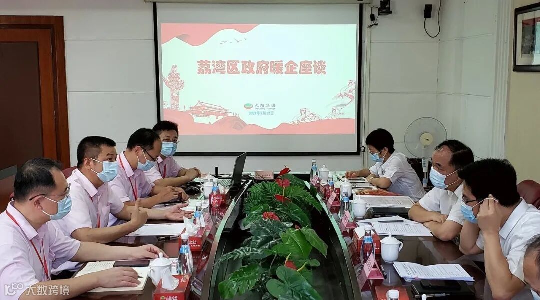 7月12日下午,荔湾区区长毕锐明率队来到大翔集团总部,调研企业经济情况,开展暖企活动。