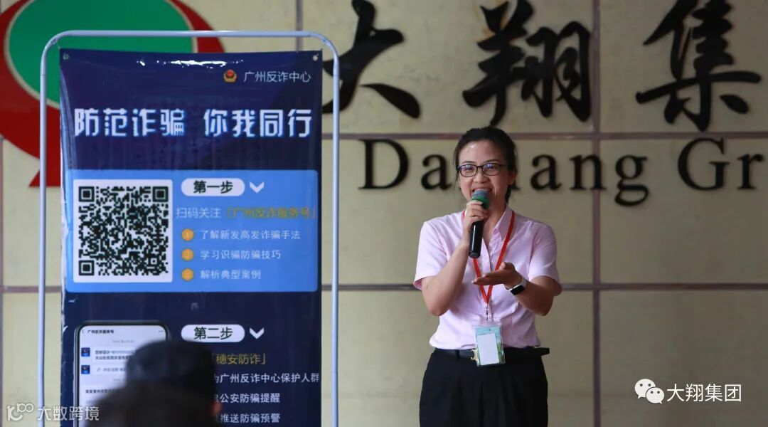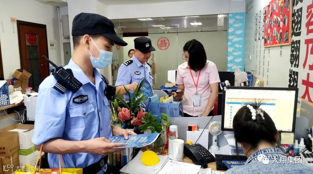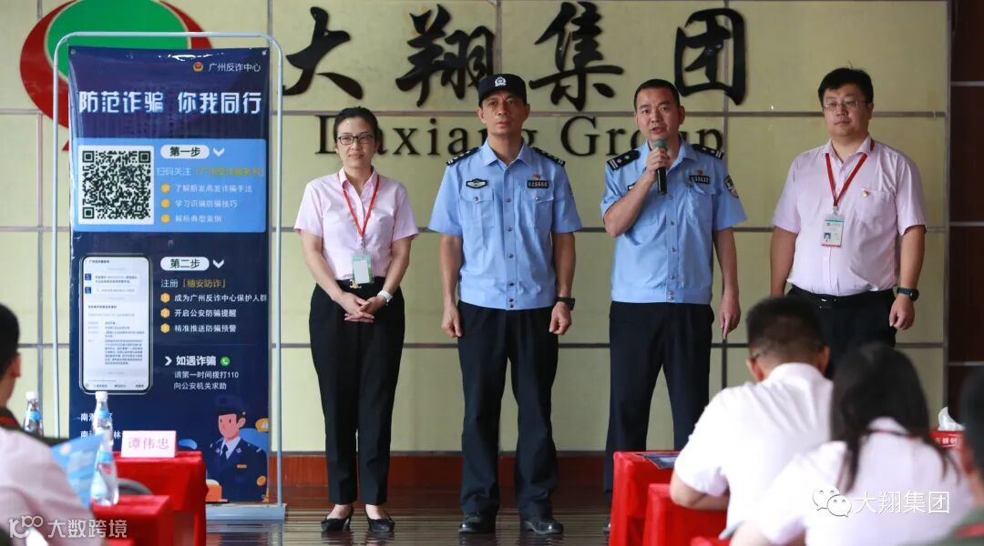 5月21日上午,受大翔集团邀请,由荔湾区东沙派出所所长谭伟忠、副所长詹福星带队的反电信诈骗宣教队来到大翔集团总部,为员工们上了一堂生动的预防电信、网络诈骗的宣传课,警示大家如何识别和应对当前通过电信网络等通讯技术手段布下的各类骗局。