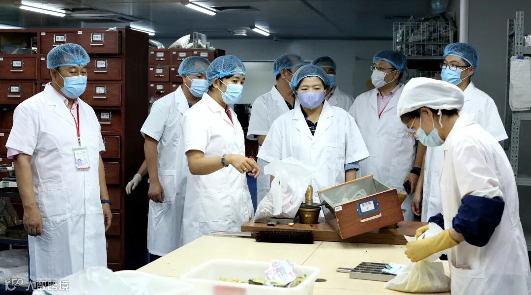 在集团人力资源中心总监刘宗涌、大翔中药制药常务副总经理姜海波、中药制药质量受权人张戴英的陪同下,检查组一行首先来到中药制药实验中心,对这里的危化品存储、使用安全,生产设施设备安全,用电安全以及人员安全等项目进行了检查,检查组一行还参观了集团煎药中心。