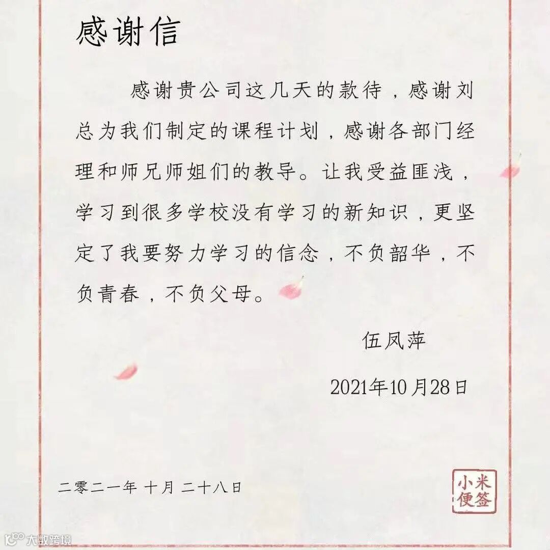 经过几天的朝夕相处,见习生们在临别之际对大翔中药制药企业的领导和员工依依不舍,纷纷写下美好的祝福表示纪念。