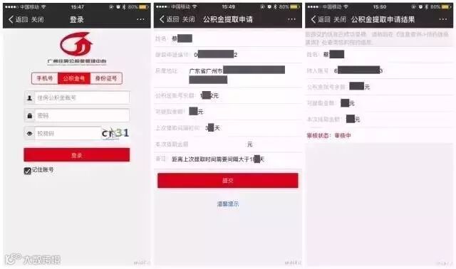 只要关注“广东发布”,回复“公积金”。点击链接即可进入公积金查询页面哦,选择"公积金业务办理"—“公积金提取申请”,输入相应的身份账户信息,写上想提取的金额,然后就等着公积金打进指定银行卡就可以啰!这里不仅可以查询、办理广州市的公积金业务