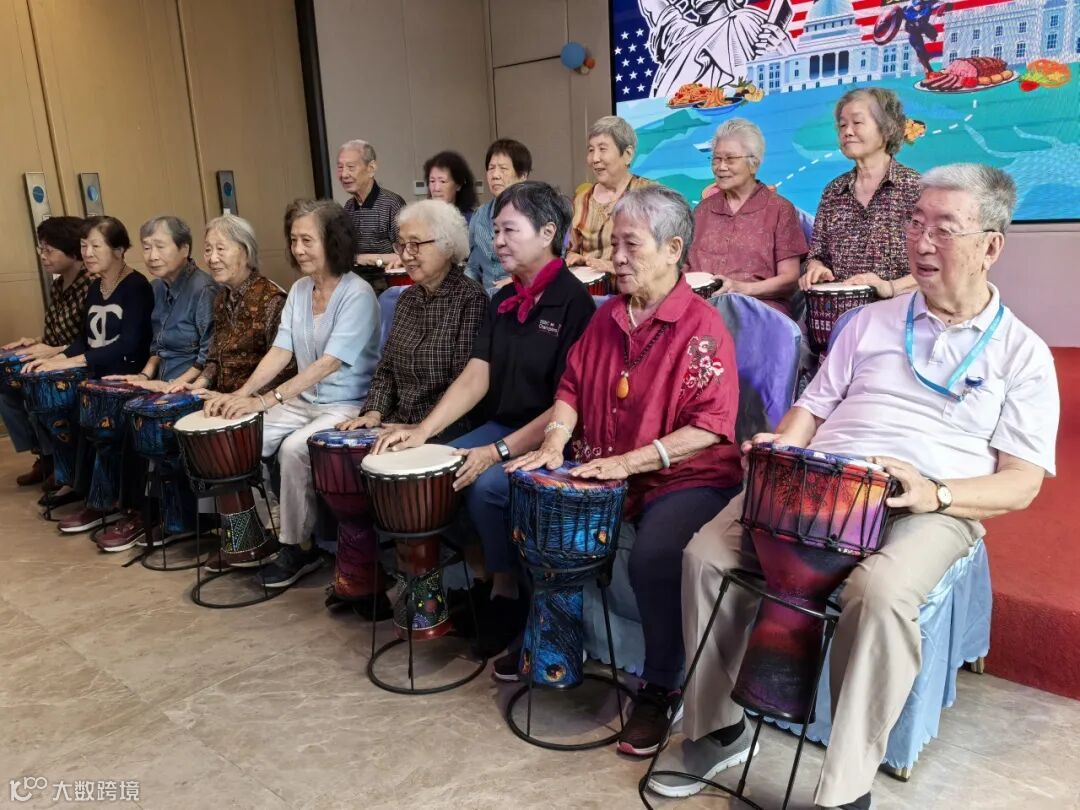 美食节开始前,部分长辈们率先分享自己过去前往美国旅游的经历,大家都听得津津有味。然后主持人给大家介绍牛扒文化,给长辈们吊住了胃口。随后,我们颐安的住户带来的非洲鼓表演——《你笑起来真好看》。那整齐欢快的节奏正如每位嘉宾的心情。