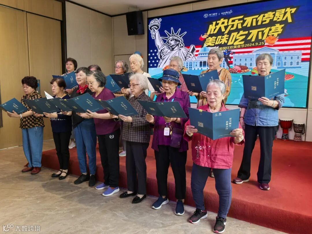 颐安长辈能够善舞,舞蹈结束又迎来了大合唱——《歌唱祖国》。不管身在何处,品尝着哪个国家的美食,长辈们都不忘对祖国的深情告白。