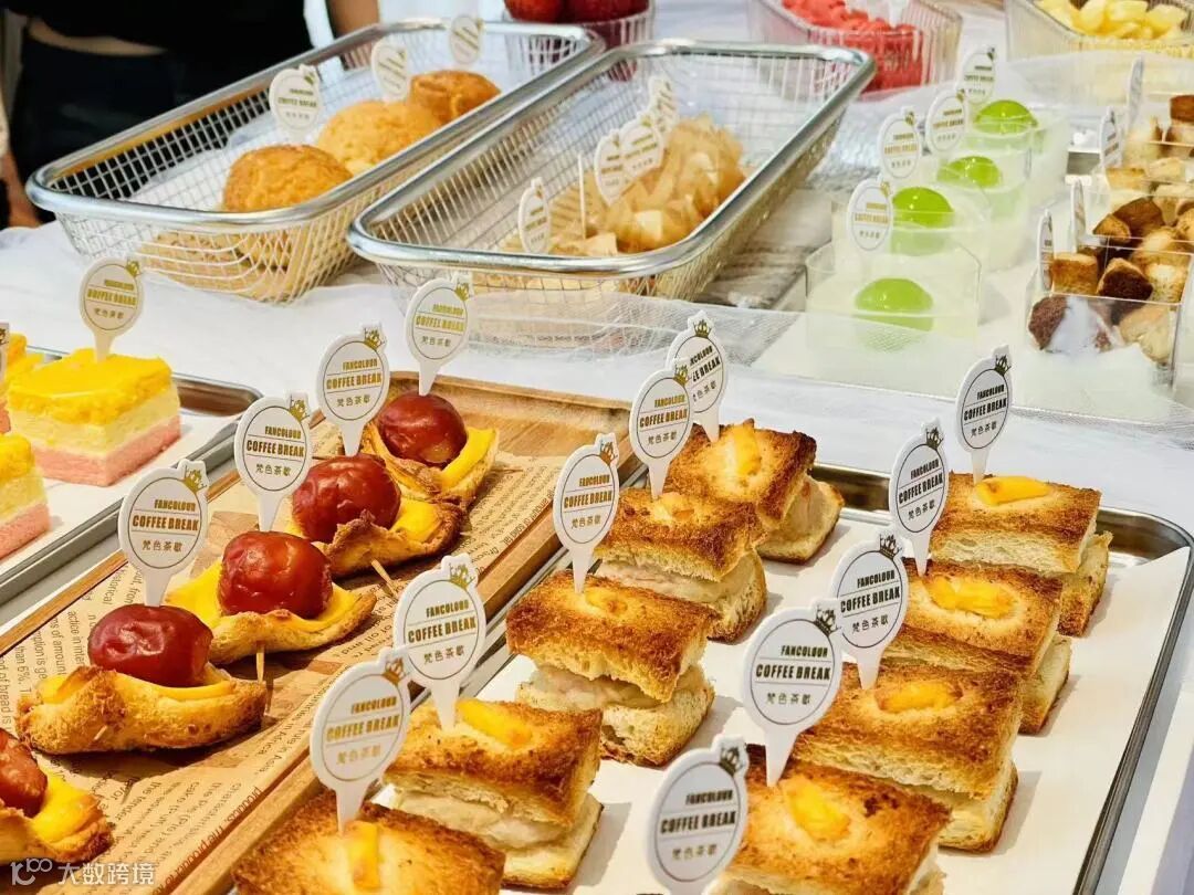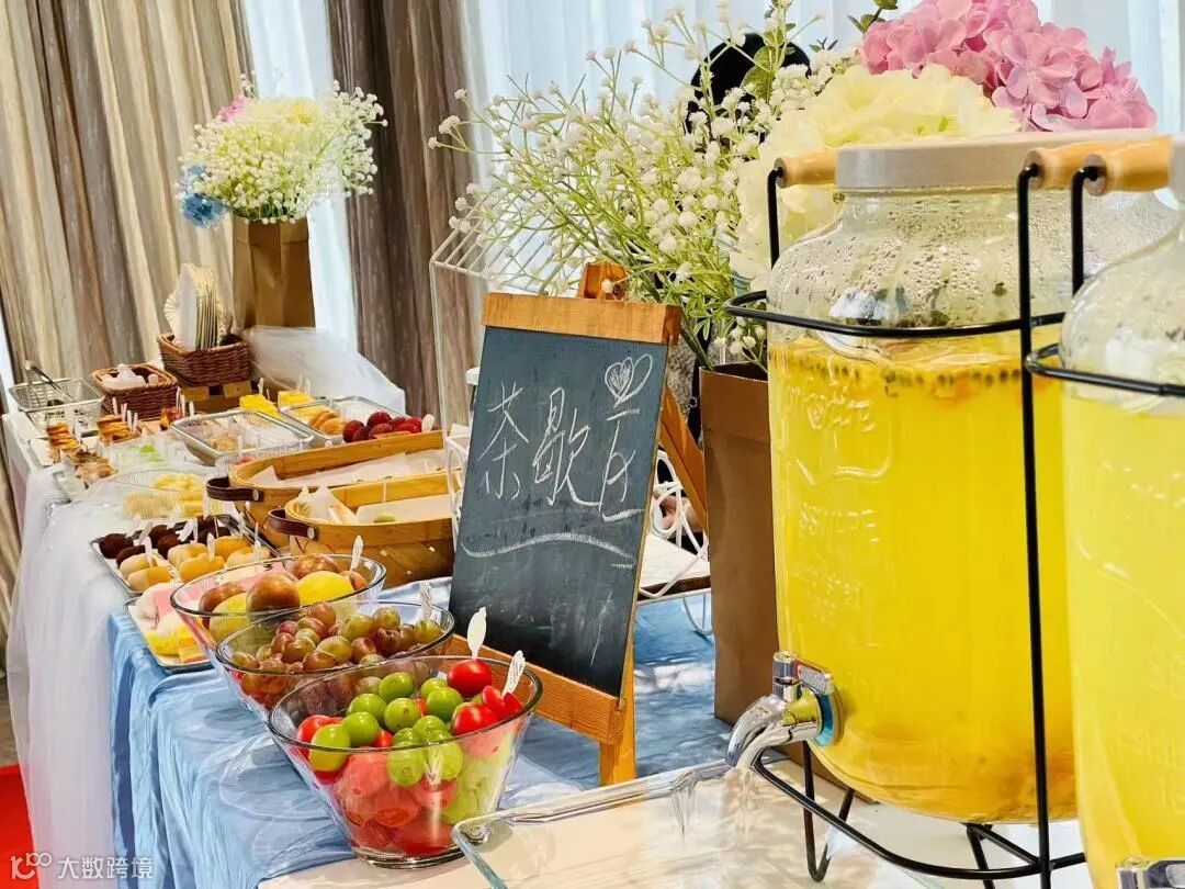 工作人员还在桌子上放置了可爱的鲨鱼,以及美味的下午茶,只等长辈们莅临品尝。