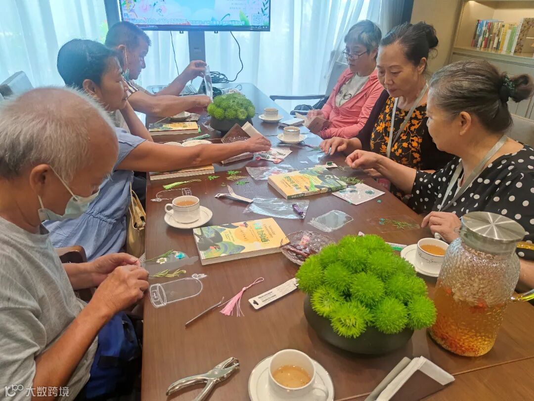长者们非常认真地了解这本书的思维精髓,也倾听了樊登读书对这本书妙趣横生的介绍。最后亲手做了一个压花书签,放在书中,表示这本书非常有价值,回去要认真地读读这本书。