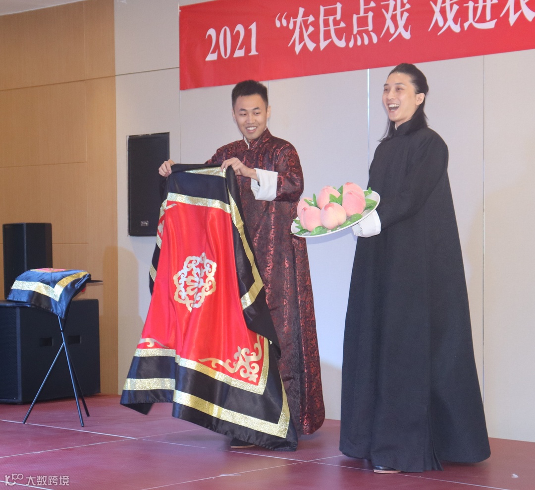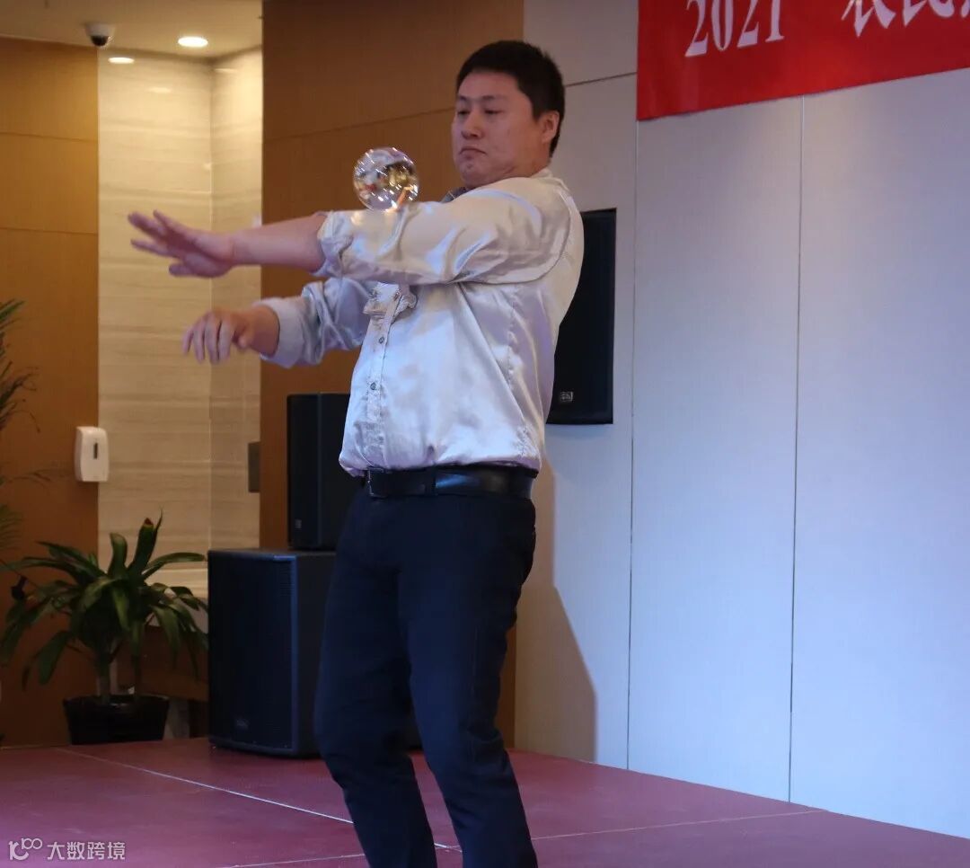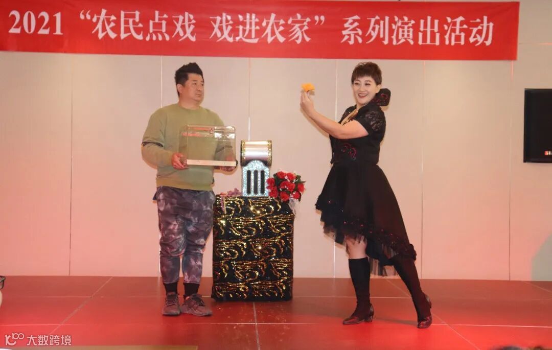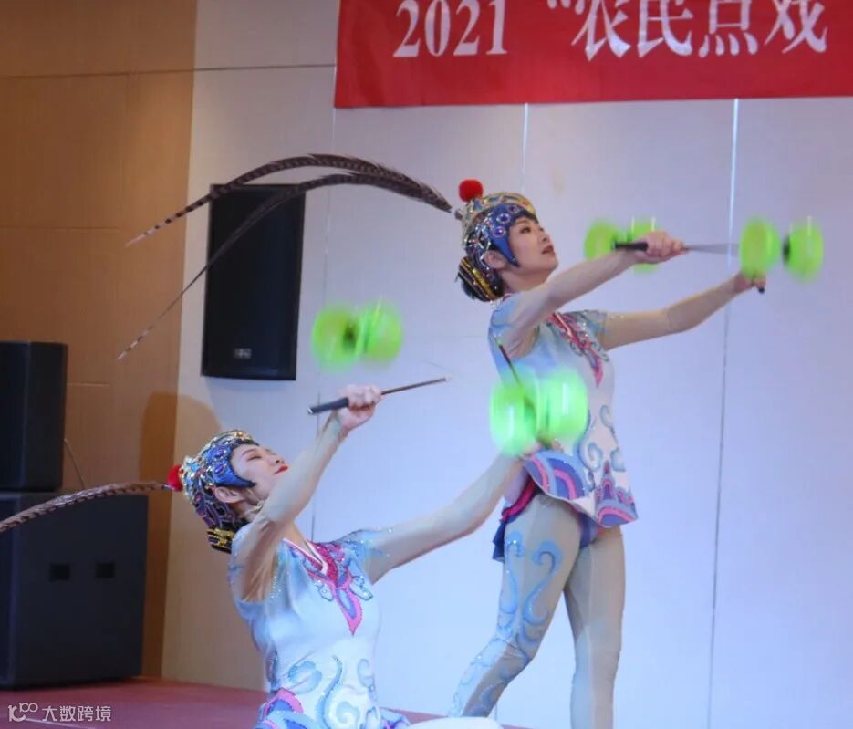 天津杂技团正在为颐安的长者们举行着杂技表演,身着彩衣的演员们在舞台上展示着绝技,转毯、魔术、双人柔术、相声魔术…… 其中“头顶花坛”的表演中,杂技演员把花坛顶在头顶舞了起来,让花坛与自己融为一体。长者们看到如此奇趣的场景,不禁拍案称奇。