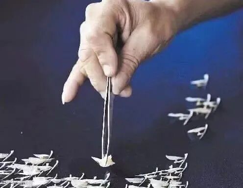 说起创作鱼骨画的由来,许是久居九河下梢之天津卫,赵爷爷从小就爱吃鱼。久而久之,便对这动物那造型奇特的骨头产生了兴趣。有时,用它们摆个小鸟、做个蝴蝶、拼只小燕。不过是一种儿时的游戏,但也造就了他细腻、有耐性、擅思考的特质。从那时起, 他就收藏鱼骨头。后来退休后听从老伴的建议,可以利用不同的鱼骨头连接拼凑,摆出画作。
