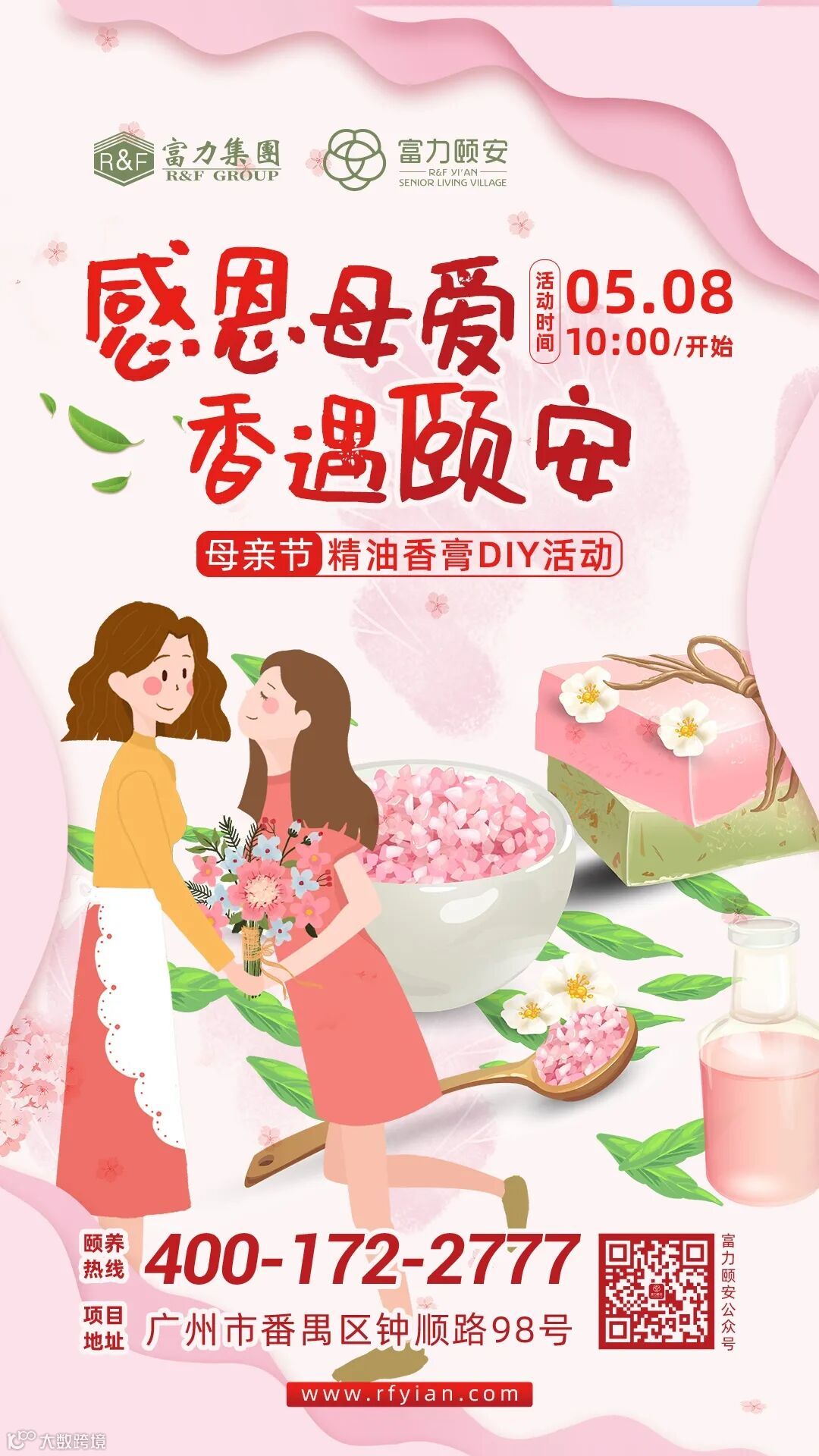 富力颐安·广州国际颐养社区已为大家准备好康乃馨,欢迎前来领取!