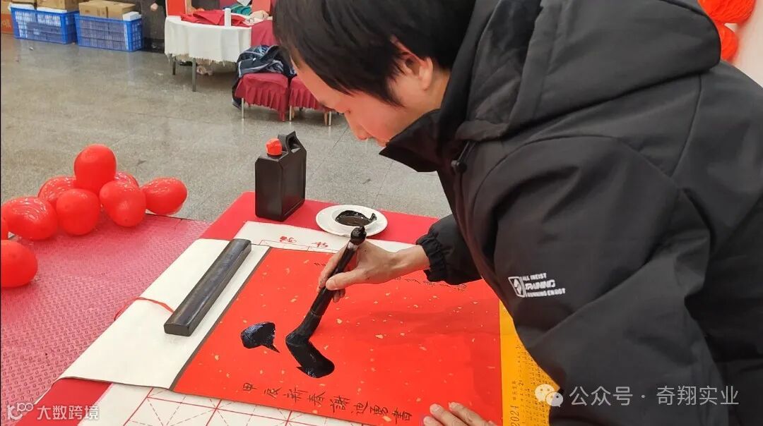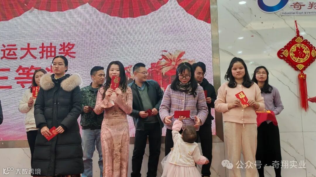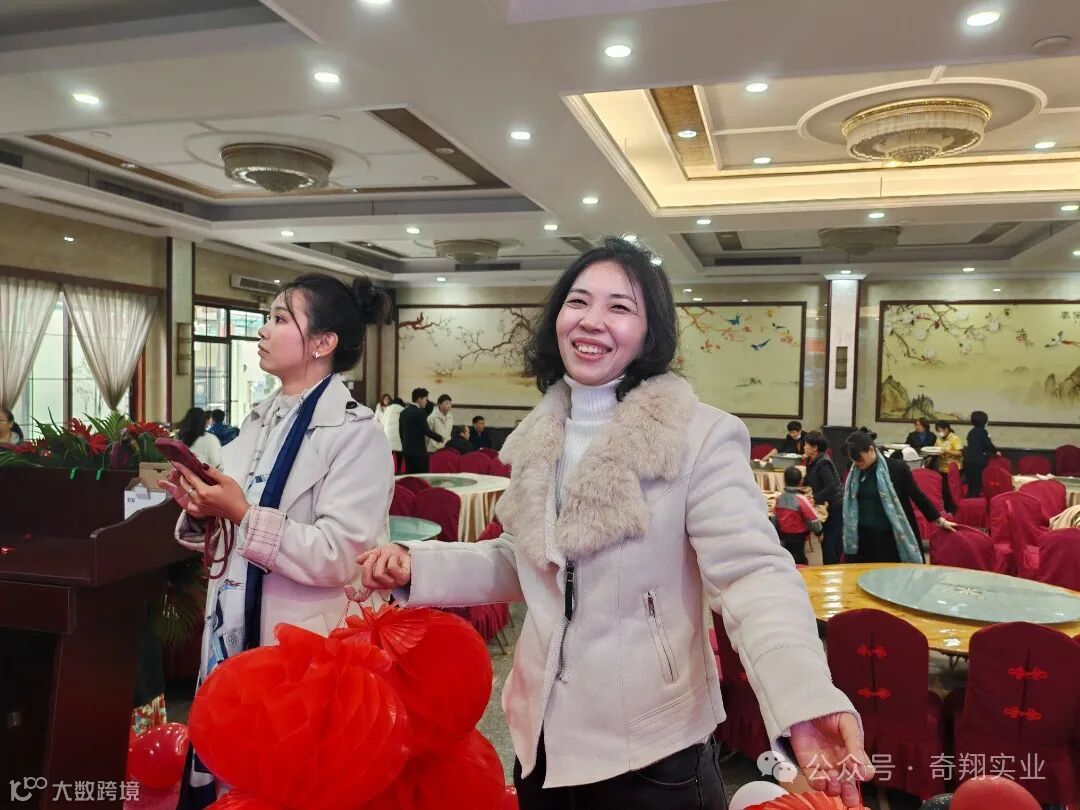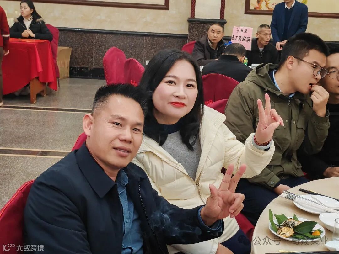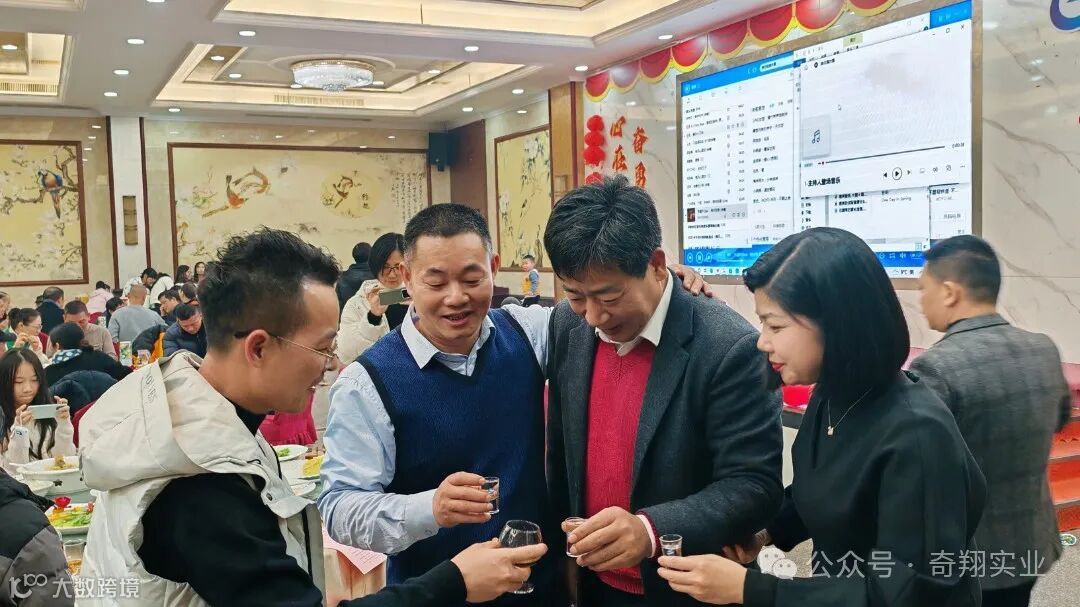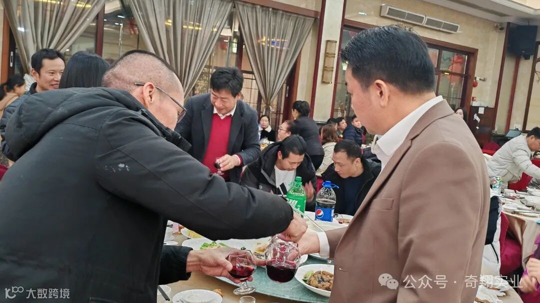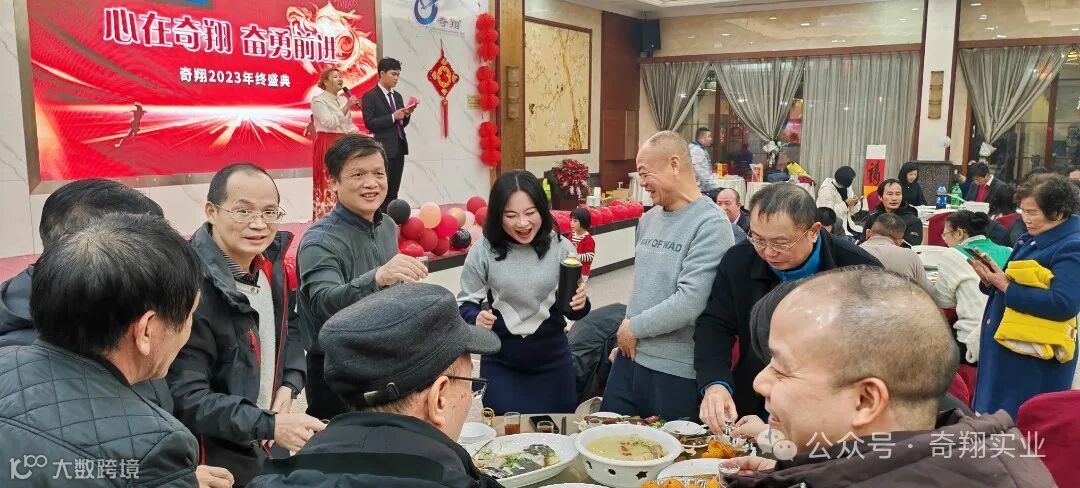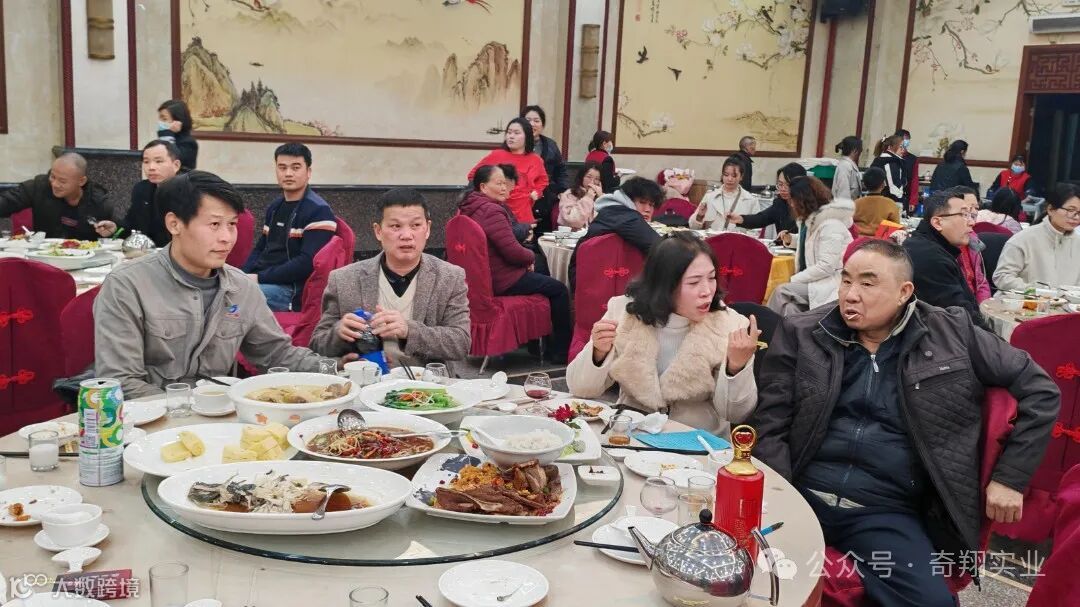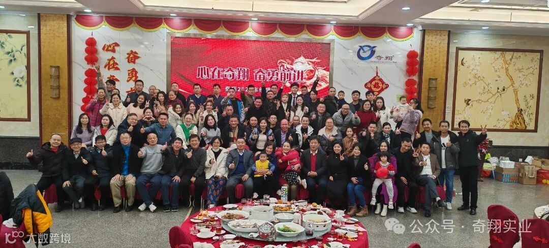 在大家的精彩表演和开怀大笑中到了晚餐时间,奇翔的家人们同聚一堂,一起举杯,欢度新年,为2024加油喝彩!