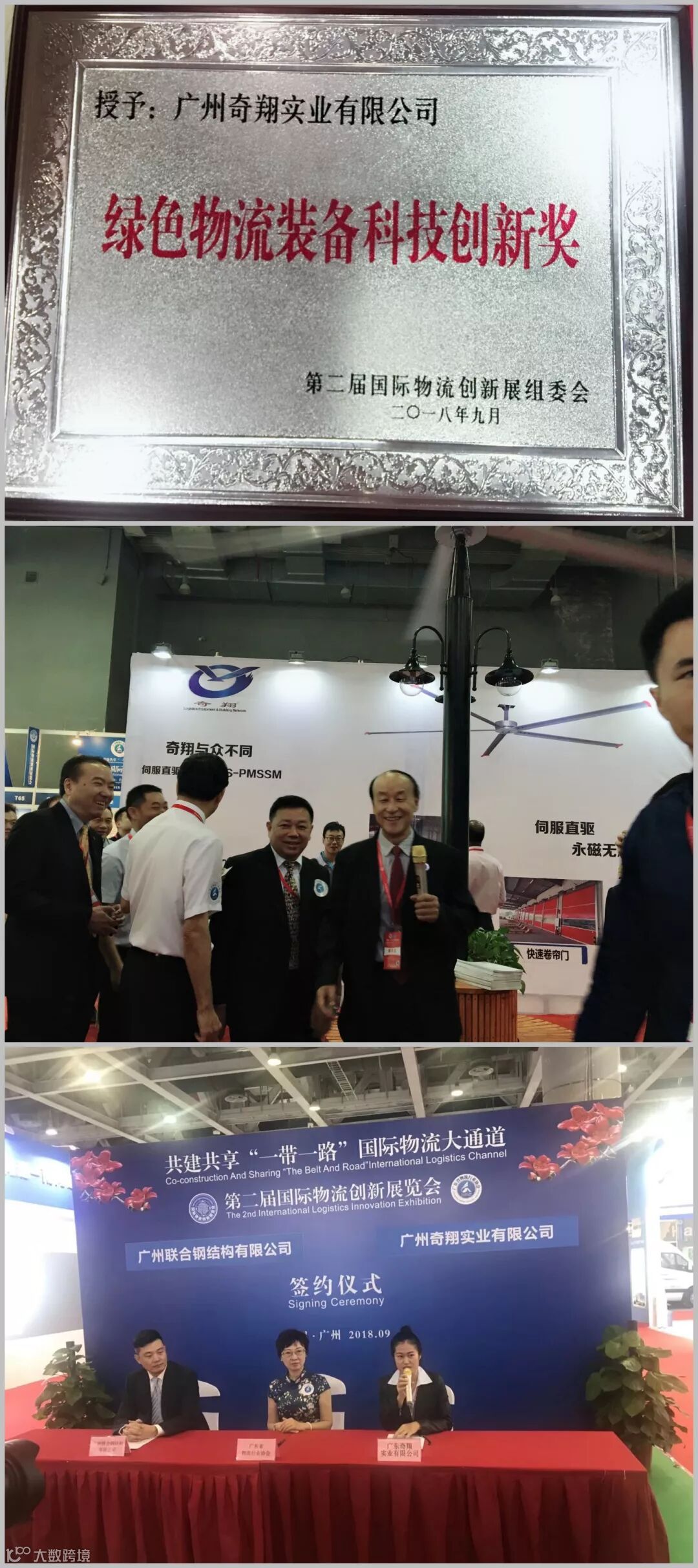 “爱立风”在展会上掀起的阵阵自然风给大家带来徐徐凉意,反响热烈。这次的展会,除了产品上给大家带来惊艳之外,奇翔有幸参与了政府间合作论坛高级会议,被创新组委会授予了“绿色物流装备科技创新奖”,并在现场和广州钢结构有限公司签约,成为战略合作伙伴。奇翔与众企业一起,积极响应和倡导共建“一带一路”国际物流大通道,搭建一个共赢和发展的商贸合作平台,为加快区域间的经济发展贡献自己的一份力量。