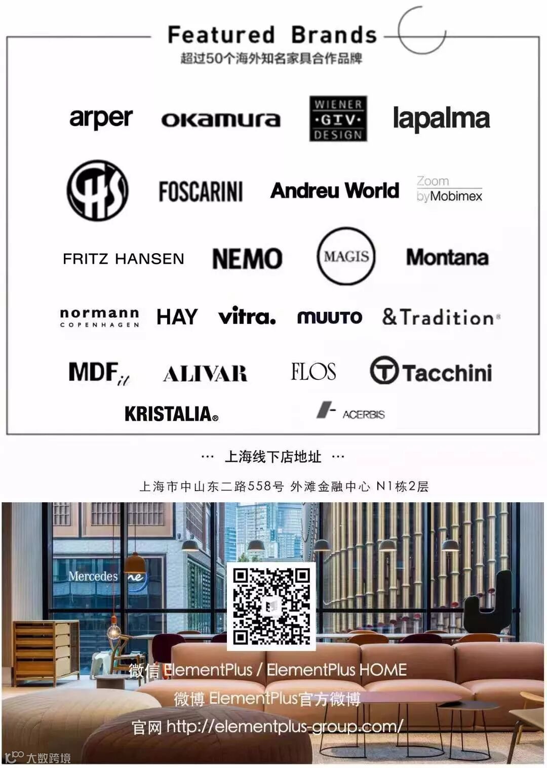 ElementPlus在2019年创立了全新的零售部门ElementPlus HOME,致力于为更多家庭用户打造立体的家庭空间,此前我们有着十多年的行业经验,为众多大型跨国企业与本土新锐公司提供一站式产品销售服务,建立了贯穿产业链的全景式平台,引入丰富的海外品牌矩阵与先锋单品,为消费者打造独而有层次到的室内空间。目前,ElementPlus已经在国内建立了5个展厅,分别位于上海、北京、苏州、香港、深圳(即将开业),每个展厅都不仅仅是一个家具的展示场所,也是关于空间美学的体验之地和家庭氛围的创新之所。