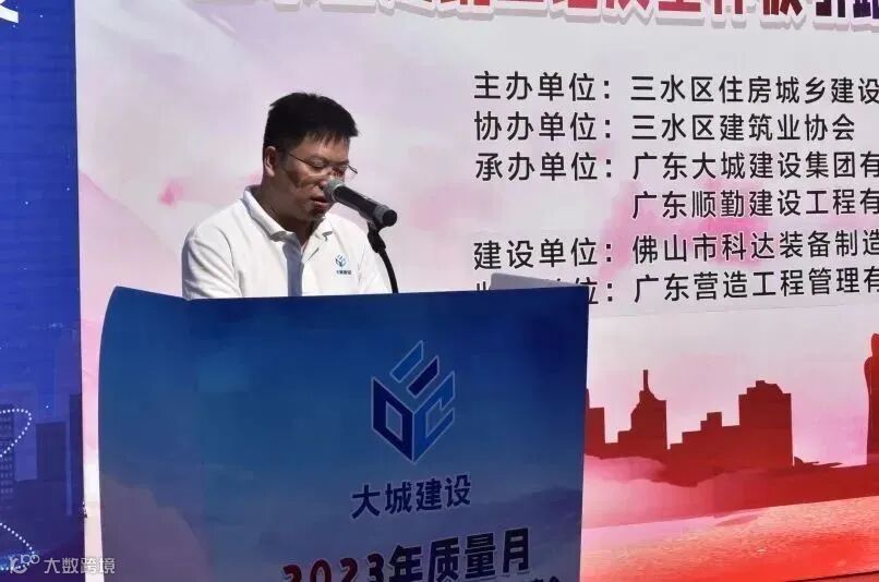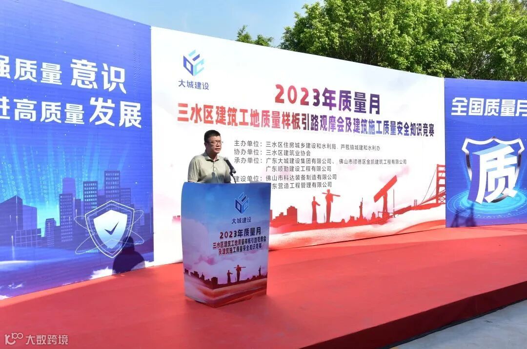随后,三水区住房城乡建设和水利局局长梁悦庭上台致辞,表达了对本次“质量月”活动圆满开展的殷切希望,并宣布观摩会正式启动。