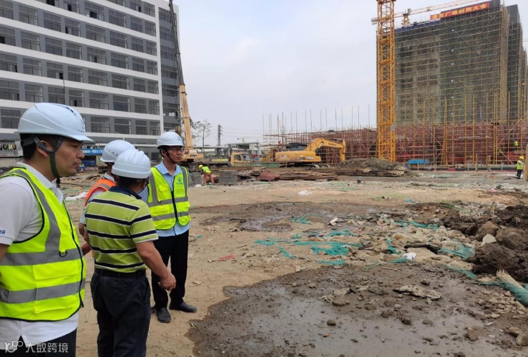 近日,我司集团副总经理、总工程师吴贺勋,到佛山市顺德区利来丰印染有限公司厂房项目带班检查。大湾区质安部副经理陈源,质安部主管陈飞龙,以及项目经理岑志良等管理人员陪同。