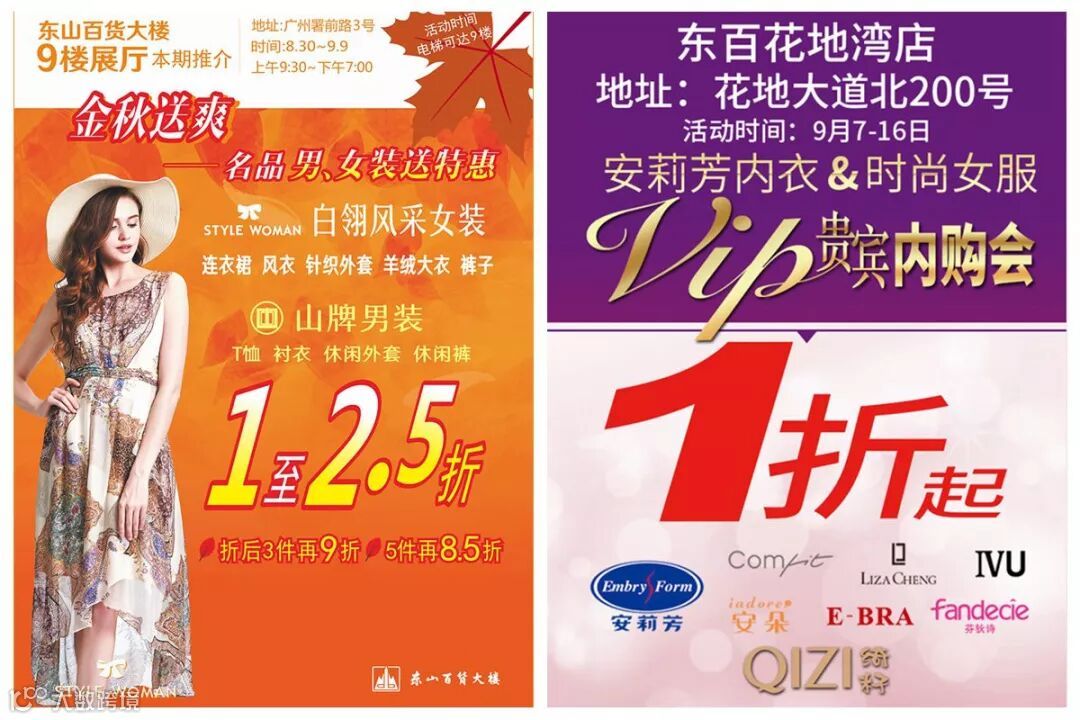 🎁花地湾店南广场:安莉芳内衣时尚女服联合VIP内购会,全场1折起,购满500元再减50元。打包价100元10件(每人限购一份)、时尚女服99元起。活动时间:9月7-16日
