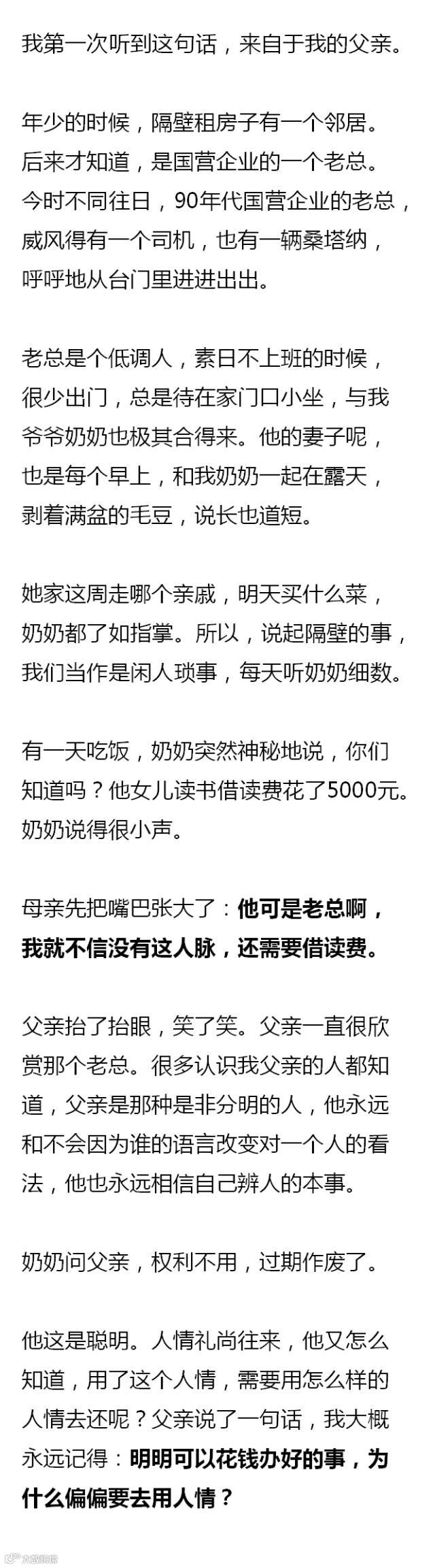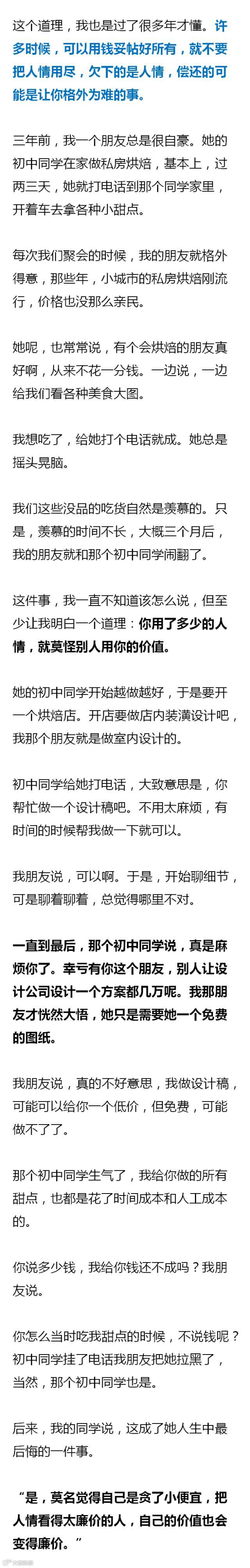 真正聪明的人,应该明白,能用钱解决的事,尽量不用人情。