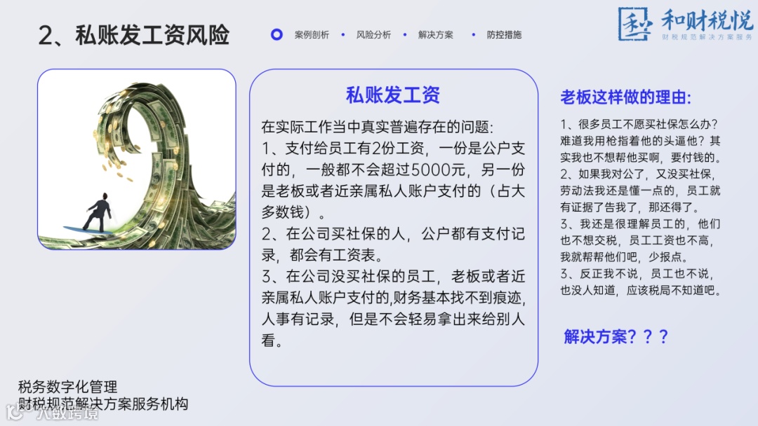 1、支付给员工有2份工资,一份是公户支付的,一般都不会超过5000元,另一份是老板或者近亲属私人账户支付的(占大多数钱)。