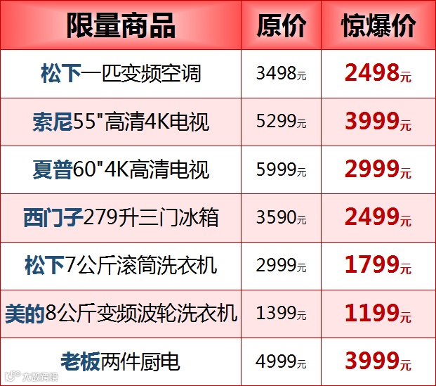 🔹家电商场新装复业,全场电器6-9折