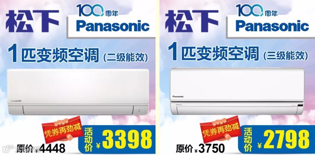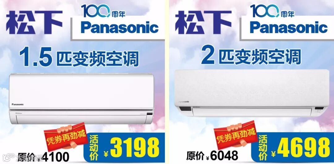 「套购优惠」购两件在最终成交价再减100元,购三件在最终成交价再减300元(小家电、松下空调、超低特价品除外) |