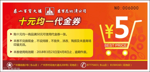 一张「10元均一」代金券