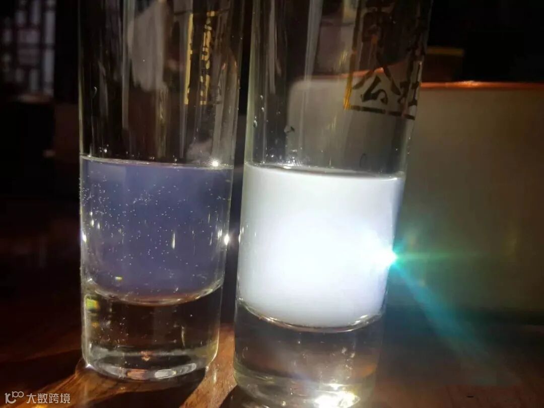 而如果人为想让白酒加水变混浊,也是可以通过添加相应呈香呈味物质来实现。如上图右侧杯子,这种加水后像牛奶一样的混浊正常吗?显然是呈香呈味物质添加得过量了。