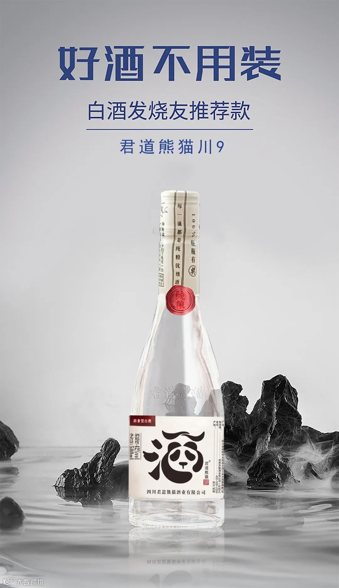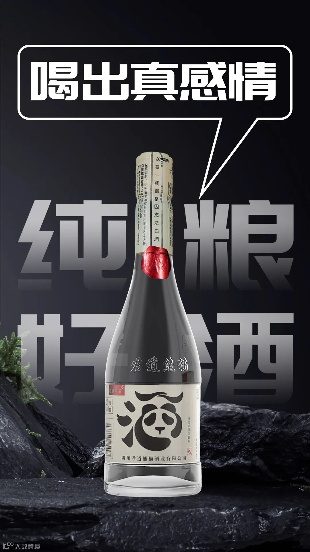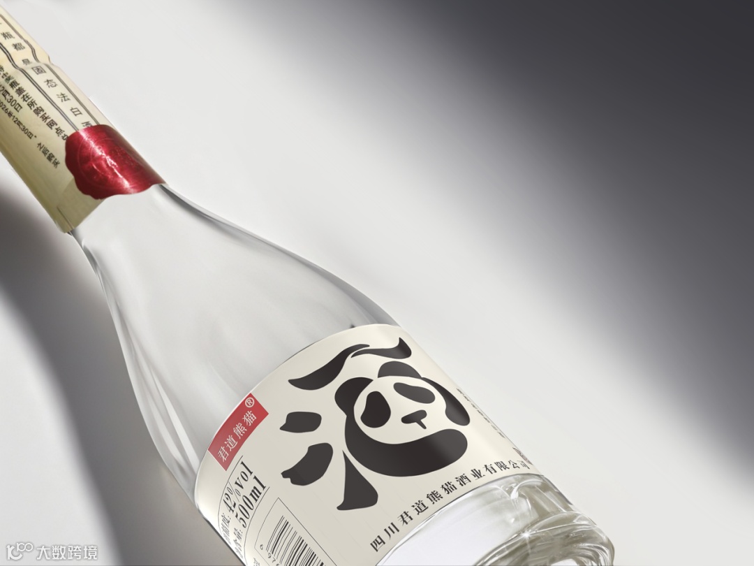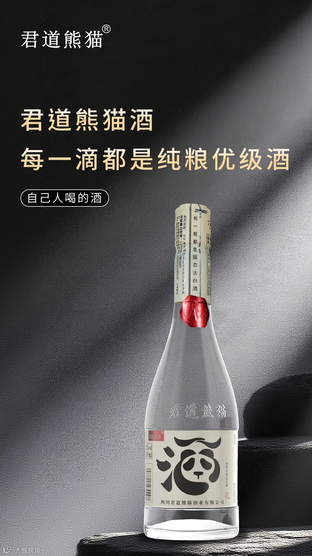 在包装美学上,君道熊猫酒完成了传统与现代的创造性转化。设计师摒弃传统光瓶的简陋感,采用黑白主色调搭配烫金熊猫徽标,既呼应熊猫毛色,又契合现代审美;500 克高白料玻璃瓶的厚重质感,搭配金箔烫金的纯粮酿造徽章,在货架上形成强烈视觉冲击。这种设计让光瓶酒不再是低端代名词,而是成为年轻人社交分享的高颜值单品。