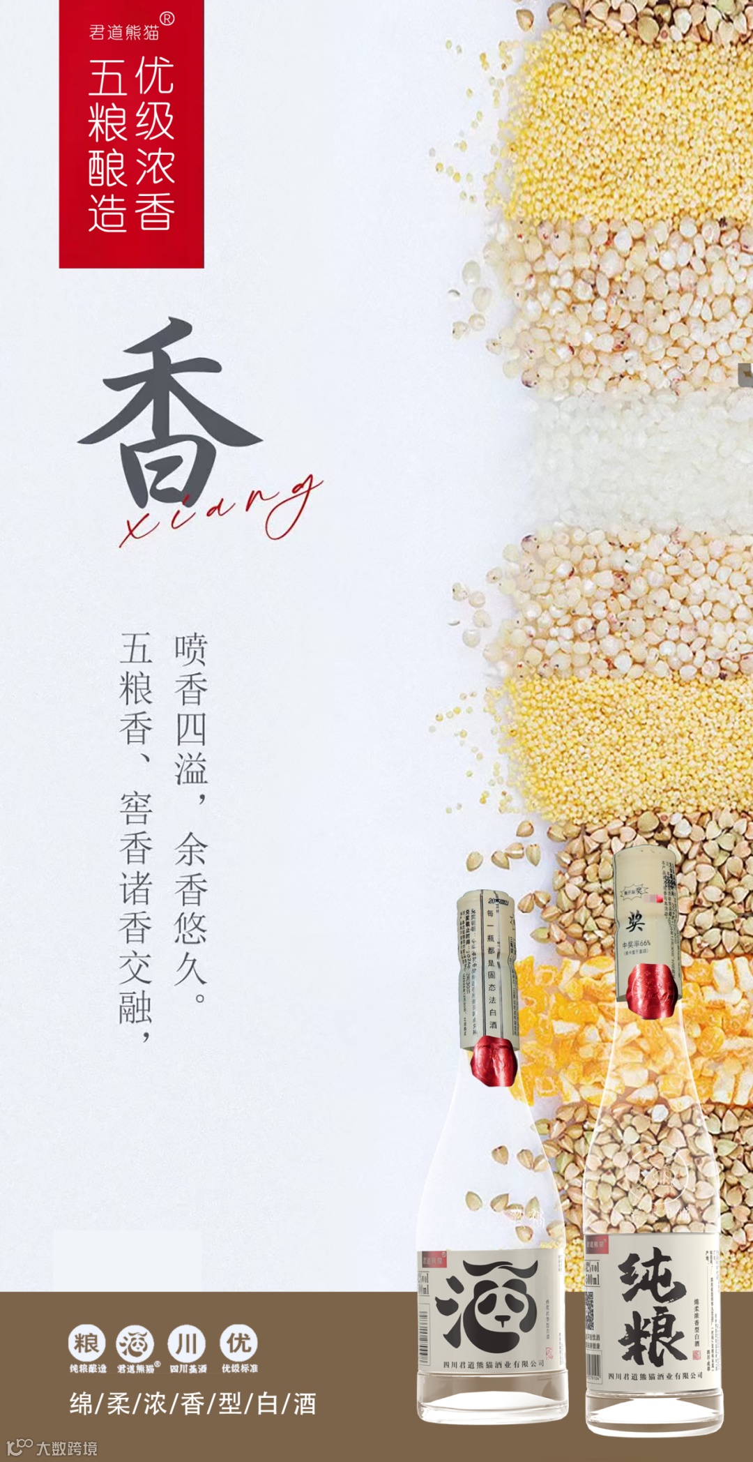 现在不少光瓶酒为了压低成本,会加食用酒精、香精,但君道熊猫酒偏要 “反其道而行”:坚持 纯粮酿造,只用高粱、大米、糯米、小麦、玉米五种粮食,按传统 “续糟配料、固态发酵” 工艺来。