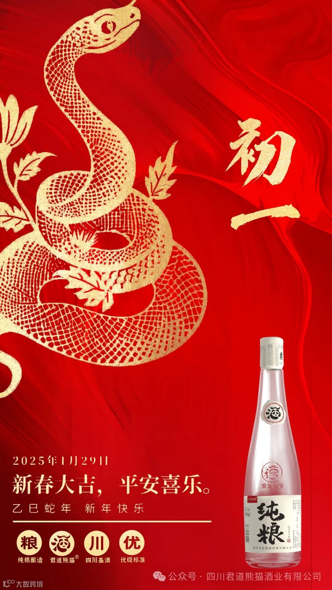 蛇年已至,万象更新。在这充满希望与活力的新年伊始,四川君道熊猫酒业有限公司全体员工向您致以最诚挚的新年祝福!