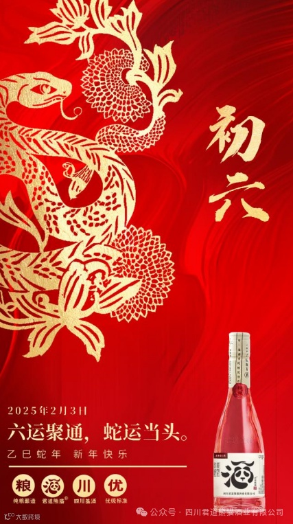 初六送穷神,君道熊猫酒祝您好运连连,幸福满满。君道熊猫酒,为您的生活添喜庆,为您的新年增吉祥,愿您在新的一年里,六六大顺,心想事成。