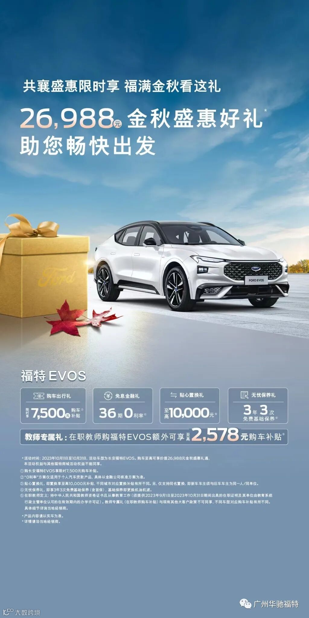 教师专属礼:在职教师购福特EVOS额外可享至高2578元购车补贴