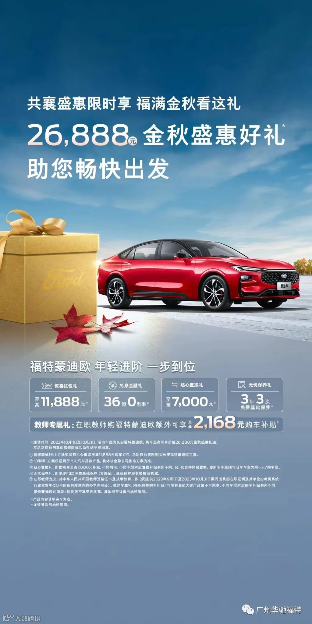 教师专属礼:在职教师购福特蒙迪欧额外可享至高2,168元购车补贴
