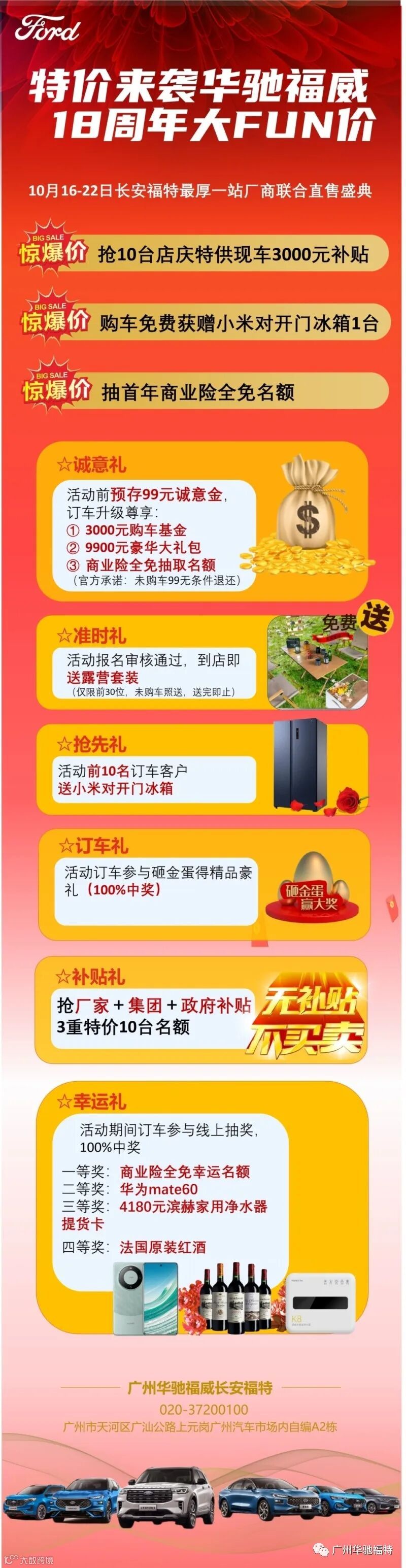 18周年店庆,华驰福特4S店以充满感恩的心情迎接每一位顾客的到来。交意向金是购车过程中的一环,它能够为您保驾护航,享受独特的购车优惠。