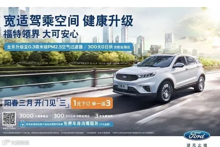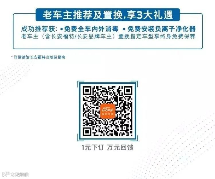 福特商城1元下订,3千元健康基金,3个月提前拥车,3年免费保养