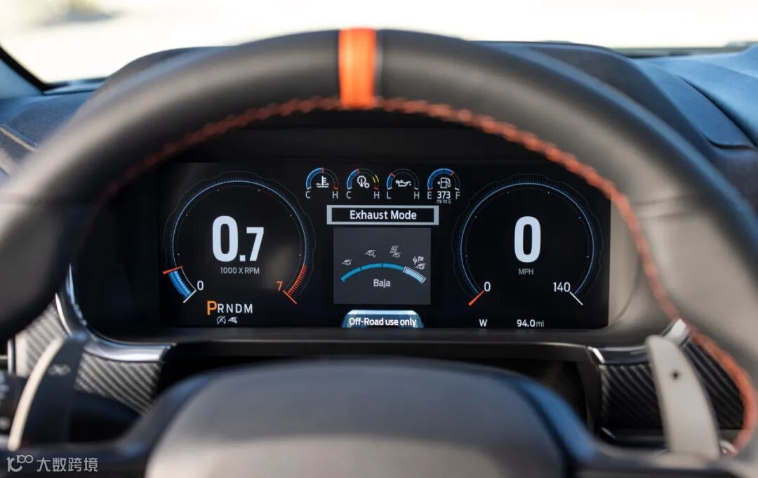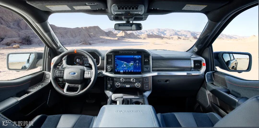全新一代福特F-150猛禽的内饰采用了福特最新的智能座舱设计。12英寸中控屏可以显示F-150猛禽的专属画面,比如动态效果、越野路况数据和实时导航等,同时这块屏幕还支持分屏操作。