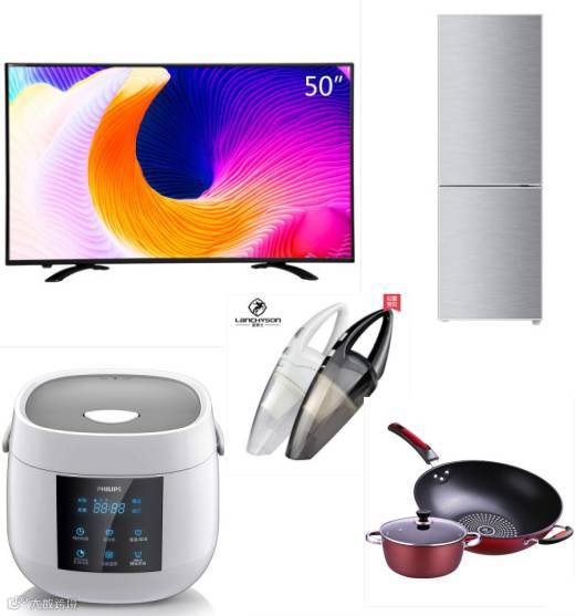 (50寸液晶大电视、160L海尔冰箱、多功能电饭煲、行李箱等)
