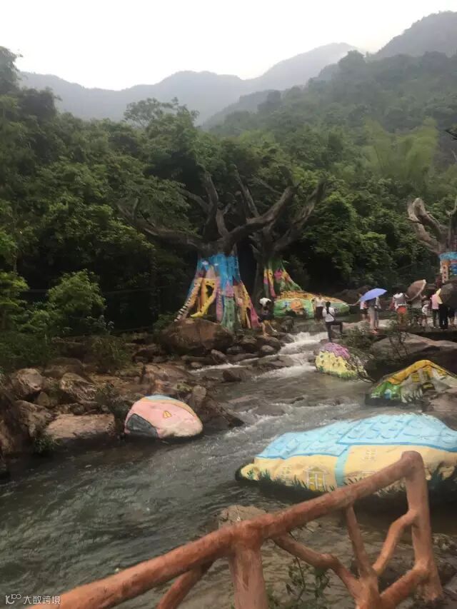 从山脚开始,大家先是来到了奇趣水谷景点,在这里可以看到在树上及石头上的彩绘,非常适合拍照。栈道亲水而建,沿途有多个凉亭和观景台。大家漫步其中,一边观瀑留影,一边呼吸清新空气,玩的不亦乐乎。