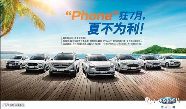 活动期间,到店订购长安福特任意车型即有机会抽取iPhone7等好礼;