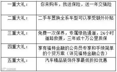 2、试驾礼:送福特衣服大礼包200元代金券;