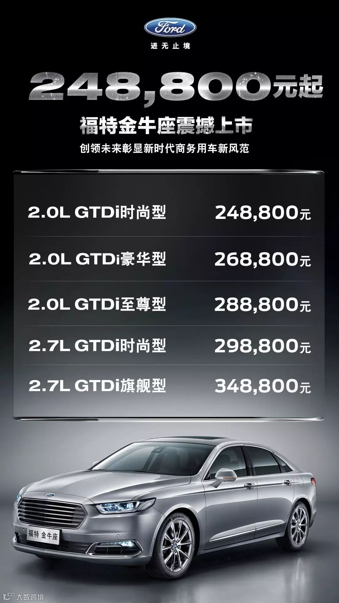 福特金牛座推出的5款车型,厂商建议零售价如下: