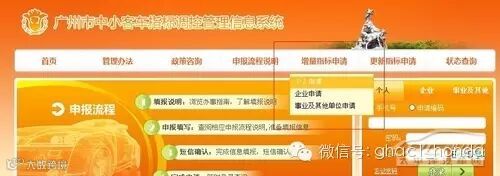 登陆“广州中小客车指标调控管理系统”网站(http://jtzl.gzjt.gov.cn/)后,在增量指标申请选项中选择对应的申请项目。