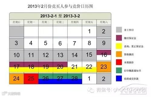 每月月初竞价系统网站都会放出对应的该月竞价日历图,参与竞拍者可以按照图上所标的时间段来安排自己的竞拍过程。