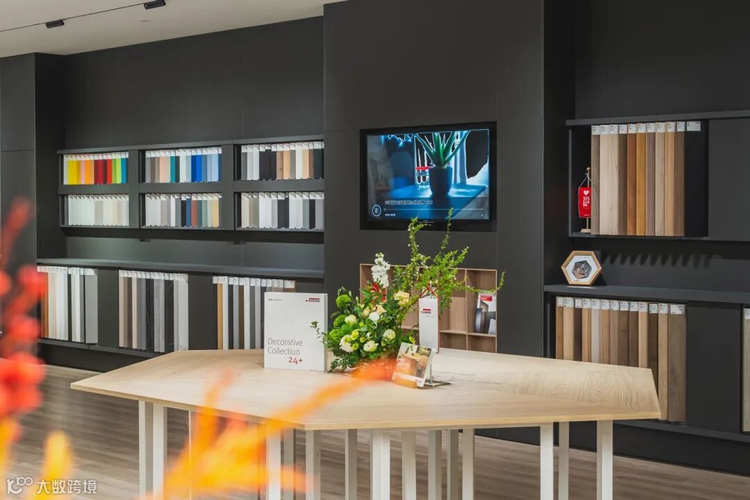 陈列着爱格饰面板的全系列产品,