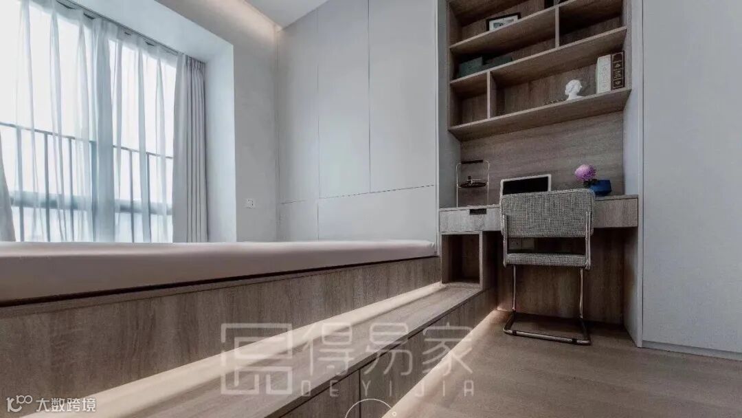 在深圳这座寸土寸的城市,空间的有效利用致关重要,而榻榻米+储物柜+书桌的一体化定制则可以实现空间的最大化应用,因此深受业主欢迎。