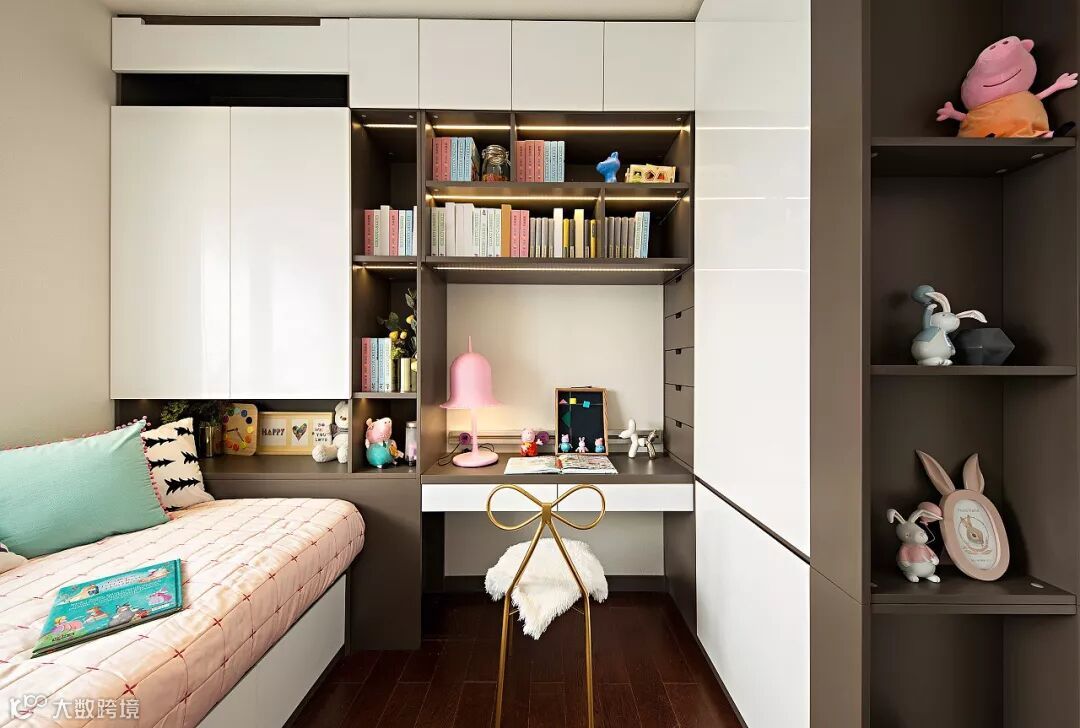 在国内,儿童房的面积一般都不大,除了要容纳下床、衣柜、书桌等家具,还要留出孩子活动的空间,能将空间利用到极致的定制家居自然而然的成为许多家长的首选。