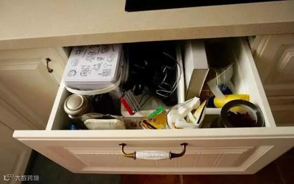 大抽屉看起来似乎很能装,却没有小抽屉实用规整,定制橱柜时,可以要求设计师在第一排定制3-4个小抽屉,用来分类整理零碎餐具。