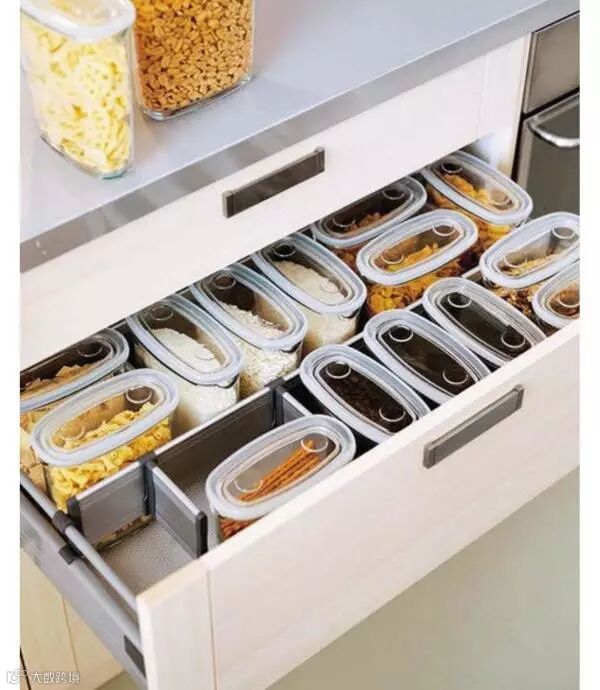 最好有一个专门的小抽屉用来放调味品,做饭的时候随手可得,不慌不乱。