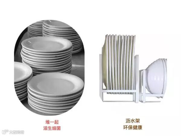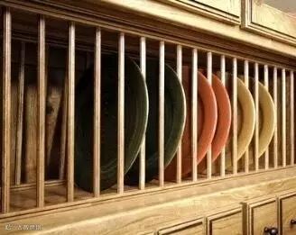 盘子一定要立起来放,且保证足够的通风,沥干后开水烫过再使用最佳,如果你是一个懒人,可以去定制一个像文件夹一样的沥水栏,刷完盘子直接放里面,美观又实用。