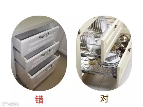 家里定制了欧式抽屉,时间久了你会发现空间规划不合理,因尺寸受限盘子不能立起来放,闭合后抽屉空间相对封闭,餐具不经过通风和沥水,非常不健康不环保。